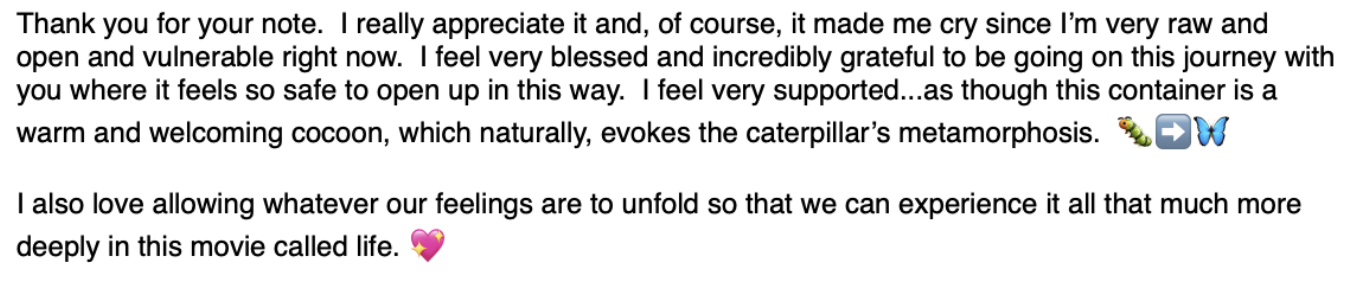 ● You had an internal map to return to your grounded core when life felt hard - while building the capacity to hold the unknown and move through vulnerable, heavy, and confusing moments in more self-honoring ways.